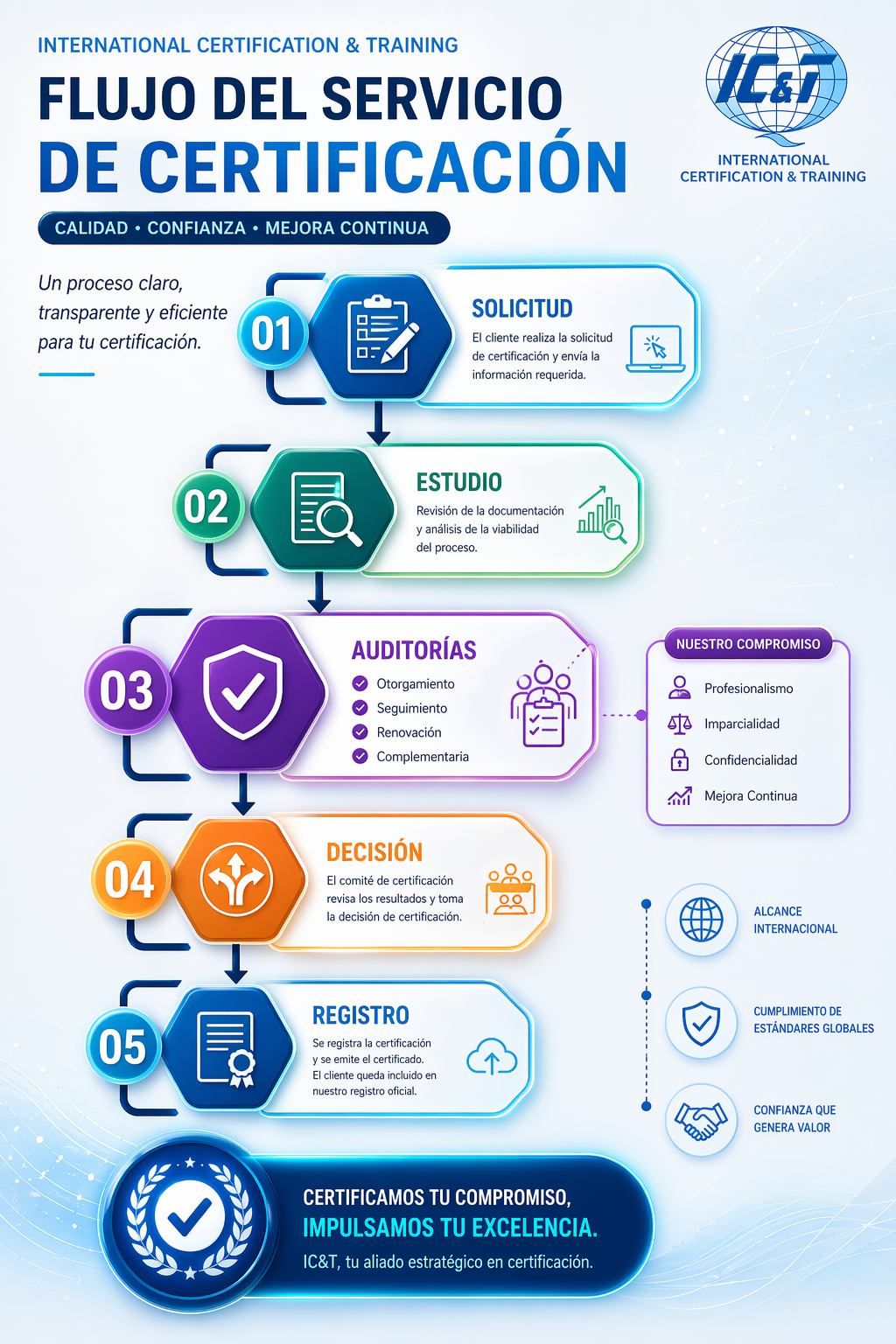 IC&T, determina la conformidad de productos y de Sistemas de Gestión de la Calidad de las empresas a través de auditorias de certificación.